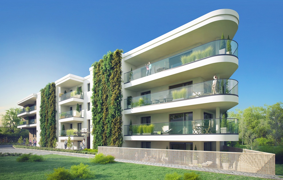 Villa Botanica – kameralny budynek wielorodzinny z elementami zieleni wertykalnej na elewacjach, zaprojektowany dla firmy Landeskrone inwestycje sp. z o.o. sp. k. księcia Jana Lubomirskiego-Lanckorońskiego.